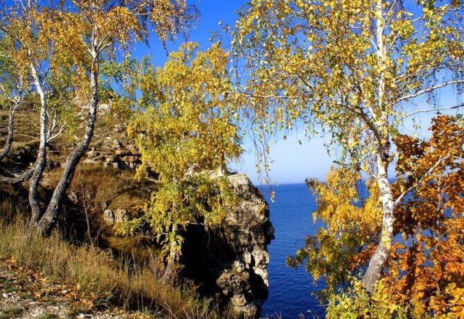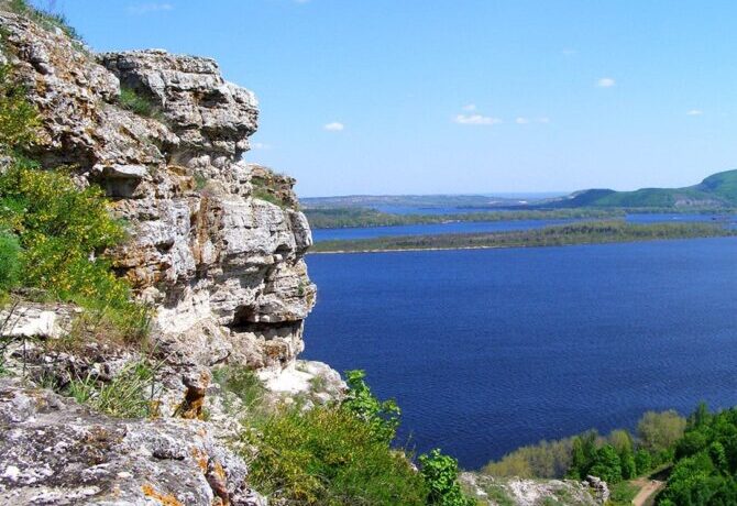 Walking through the natural attractions of Zhigulevsk, it is impossible to pass by Bald Mountain. This is another popular tourist destination with its own interesting places. One of them is the Falcon Cliff. It is located on the western slope, just on the way from the Zhiguli reserve “Samarskaya Luka” to the city. The name of the cliff was due to the similarity with the profile of a bird of prey. Here is the famous Petrov stone. Locals say that Peter I himself visited this mountain and from here examined the Volga expanses. From this natural observation deck really offers a fascinating panoramic view. Mount Bald is also interesting because here were found the remains of Sarmatian settlements dating back to the 4th century BC. Another local legend is associated with them. Until the 18th century, the Zhiguli Mountains were called Maiden Mountains. It is known that matriarchy reigned in the tribes of the Sarmatians. The mountains were renamed by the German scientist Pallas.