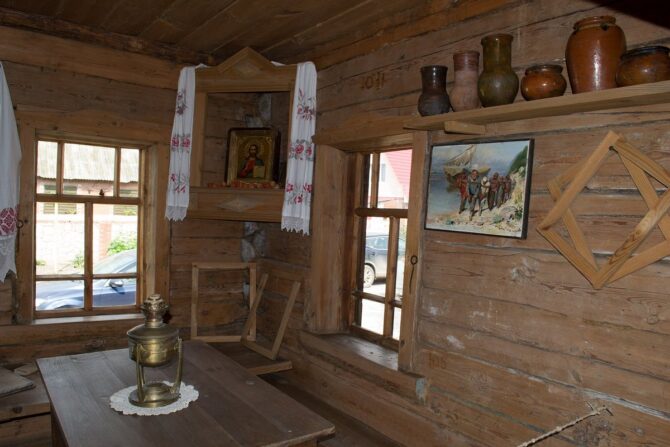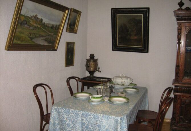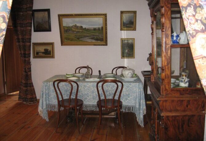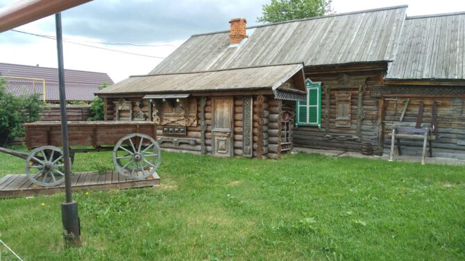 There is no need to hurry to leave Shiryaevo after visiting the Bat Museum. There are several interesting museums that are worth a visit. They make up a single historical and museum complex, so the walk can be delayed until late in the evening. In order not to rush back to the city, you can call local hotels and book a room for the night. But back to the excursion route. The house of the merchant Ivan Vdovin was built in the early twentieth century (1910). The exposition is presented in the form of rooms reflecting the merchant life at the turn of the century. The white-stone building is an architectural monument of regional importance. The owner at one time successfully traded flour and had his own mill. The hall “House of merchant Vdovin” was opened in 2011. Before that, the building was used as an art gallery. Part of the house continues to serve as an exhibition hall for the works of artists.