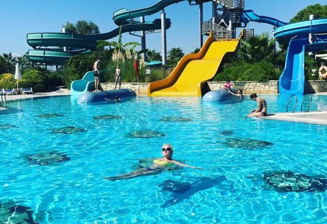 Also for this category of guests there is a pool with a non-slip coating, 35 cm deep, sleeves are issued to those who do not know how to swim. To abandon the sleeves, you need to sign a document by which parents assign responsibility for safety to themselves. Children like to have fun on the playground as well. Every day for them here arrange mini-discos, interactive shows.