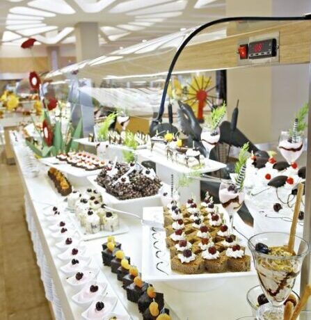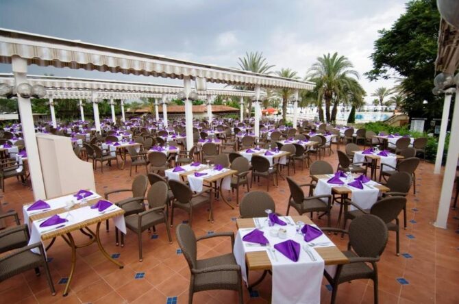 Meals are carried out in the main restaurant, working around the clock. It serves local and European cuisine. As dietary dishes, a variety of seasonal fruits and vegetables are offered. Once every 14 days, a gala dinner is organized next to the pool, exotic food is served on originally served tables.