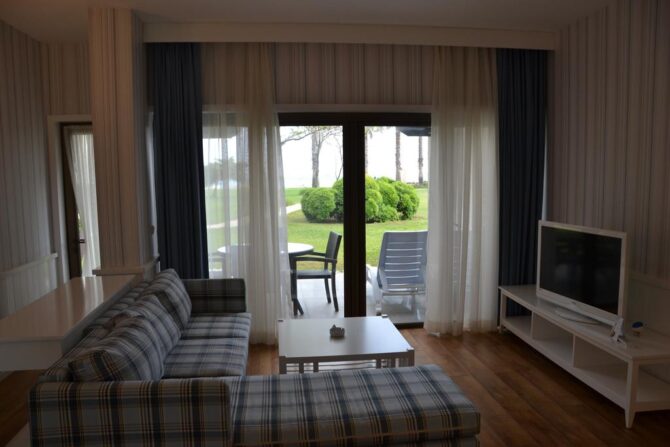 You will find comfortable rooms located in two large buildings – the five-storey main building of the Resort, and in the new – Golf. In addition, you can choose apartments in one of the 17 bungalows – two- and three-storey, the windows of which overlook the sea or a beautiful garden. Also popular are one-storey villas – 8 family houses (Family house). It provides all the necessary conditions for people with disabilities. Smoking in the rooms has been prohibited since 2017.