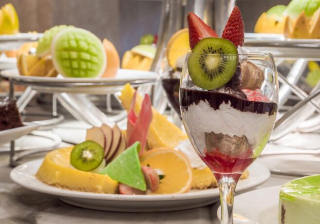 I am indifferent to sweets, but here I decided to try everything. As it turned out, most of the beautiful multi-colored cakes had an identical taste and differed only in dyes. But several times on the street exhibited large dishes with oriental sweets – here they were delicious. We also really liked one cook who made pizza and sweet puffs with cottage cheese cream. Unfortunately, this delicious meal was only the first week when the hotel had few guests.