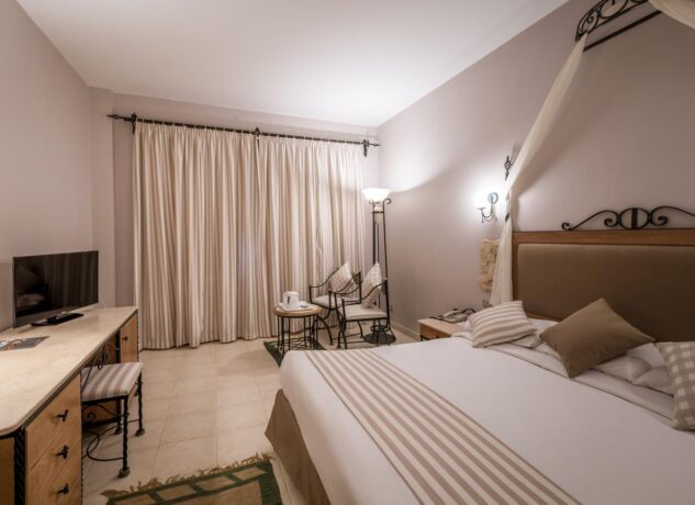 We, like other campers, were given the keys to the rooms and told to come at 10 a.m. for bracelets so that we would not get to breakfast, since breakfast was just before 10, and lunch from 12.30. We were looking for the room on our own, because no one thought to take us there. Of course, we found it, looked at it and decided to walk a little through the territory to assess the prospect of our vacation. Upset by the cold weather, we went to sleep and on the way back we met a man who brought a suitcase to our room. At first he told us about it with a clear hint of a tip, then repeated, and when he realized that nothing would wait for us angry and upset, he expressed his dissatisfaction in Arabic. Honestly, we didn’t care. I think he would only deserve a tip if he took us to the room. And just to bring a suitcase on a cart that weighed 10 kg is his job, with which we ourselves would perfectly cope. All in all, frustrated by the start of the trip, we turned on the air conditioner in heat mode and went to bed.