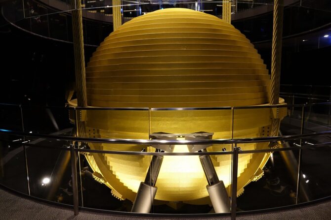 By the way, on the 89th floor there is a huge gilded steel ball that acts as a pendulum and compensates for vibrations caused by earthquakes. From the same floor, a staircase leads to the 91st floor to a small open observation deck, which offers a beautiful view down.