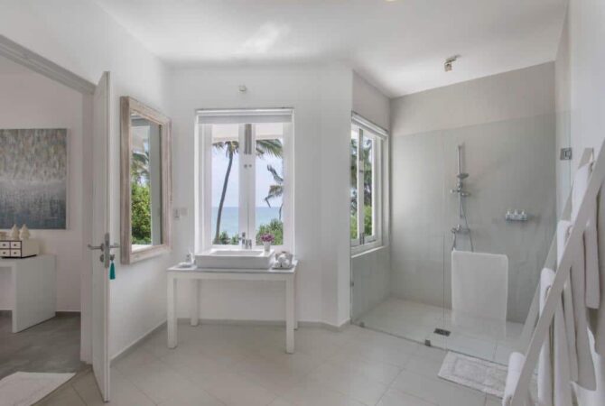 The modern five-bedroom villa is decorated in a tropical style. Panoramic windows offer views of the ocean. The house has five bedrooms, two of which are located on the ground floor and three on the upper floor. The bedrooms are furnished with four-poster king-size beds (1 room has 2 single beds) and air conditioning. All rooms have a private bathroom with a shower. The living room and dining room, located on the ground floor, have access to the roof. From there you can admire the spectacular sunsets. All rooms on the top floor have a long balcony with sea views. Private gardens lined with coconut palms lead down to the beach. Here you can swim in the season from December to May. In addition, the rocky ledges on one side of the beach create small coves that can be safely bathed throughout the year. Sandals Restaurant has a chef who serves Sri Lankan dishes and some Western dishes. The villa offers excellent opportunities for al fresco dining, which include a barbecue of seafood caught while fishing.