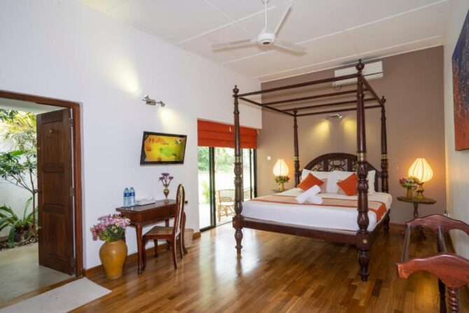During the monsoon period, you can pay attention to this 5-star complex, located on the shore of the lake in the middle of the jungle. It has 7 spacious rooms overlooking the lake, a courtyard where peacocks peacefully walk, the possibility of organizing fishing on catamarans, night crab hunting and other types of safari. The lovingly prepared menu is made up of delicious products that are extracted every day directly from the lake, thanks to the courtesy of local fishermen. The chef also specialises in Western-style cuisine prepared using old Sri Lankan recipes for an exotic blend of flavours. The hotel is perfect for romantic trips, honeymoons or complete privacy from people. There is a minibus to Hikkaduwa. Travel time takes 5 minutes.