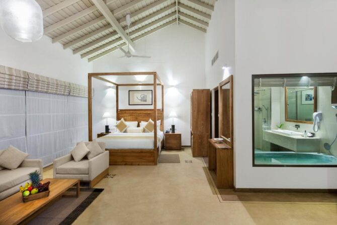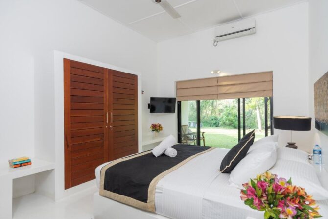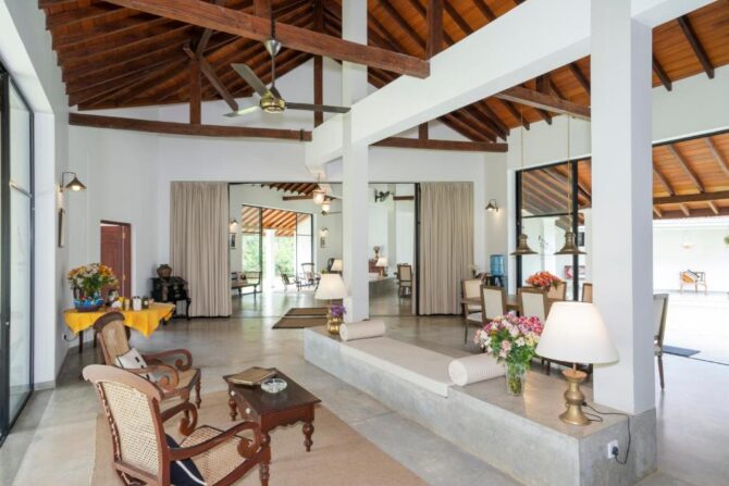 The beach villa was designed by architect K. Angelendran. It was recently opened to the general public. The house consists of 5 spacious bedrooms with adjoining terraces and bathrooms. The spacious living areas are decorated in the elegant style of coastal bungalows. The owners know that there is nothing better than delicious homemade food, and this is exactly what guests will be served at Villa Saffron. Culinary experts are trained to meet any food needs, whether western, eastern or delicious food from Sri Lanka with rice and curry. They are ready to prepare a delicious selection of dishes that are sure to please lovers of gastronomy. After a hearty breakfast, vacationers can head to the beach, go diving or surfing, hike or rent a bicycle to go to the turtle nursery. The grounds are ideal for yoga and meditation.