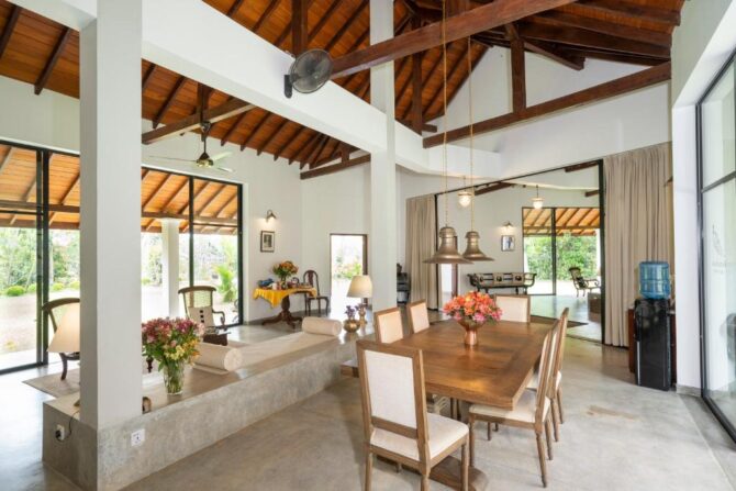 The villa is built on the shore of Lake Rathgama. This is the largest seawater lagoon in Sri Lanka. Numerous populations of birds live on its shores, so amateur ornithologists will be able to take many unique photos from the life of feathered neighbors. For accommodation there are a Family Room in the attic and two Deluxe Rooms with garden view. A charming local couple from the village fully caters to guests as housekeepers and cooks. They offer delicious dishes prepared according to the preferences of the guests. Breakfast is served in the morning, guests decide what they would like for lunch and dinner, and inform the couple. While a popular choice of dishes is Sri Lankan cuisine, these chefs will be happy to cater to any specific flavors. At any time, you can take the barbecue facilities and cook your own meals on the coals.