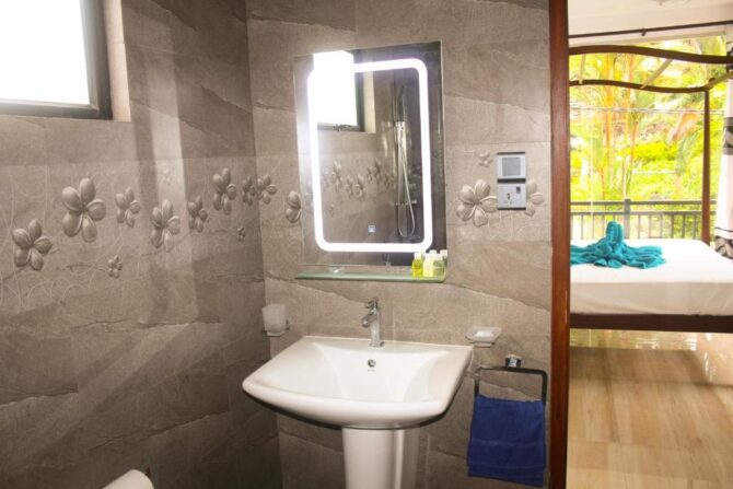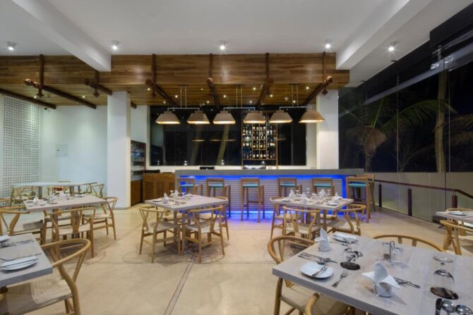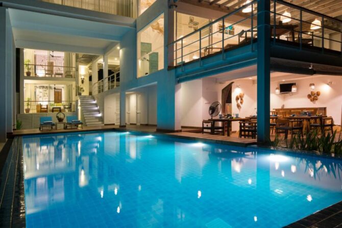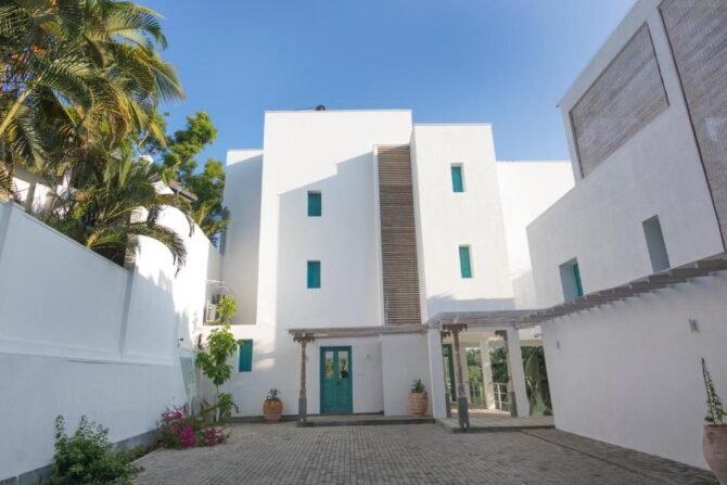 The five-star guest house is located a kilometer from the beach. This is a famous party place in Hikkaduwa. On the territory of the hotel there is one of the popular nightclubs of the resort. Hotel rooms are located on floors 2-4. A street staircase leads to each of them. In the yard there is a swimming pool, a lounge area under reed canopies, a barbecue facility is installed. Rooms with panoramic windows, equipped with kitchenettes, terraces. Bicycles and scooters are parked in front of the gate and can be rented. Spa facilities are available. Not far from the hotel there is a turtle nursery, a city bus station and a favorite place for divers – a coral reef.
