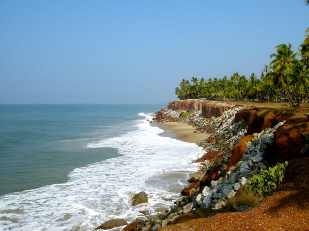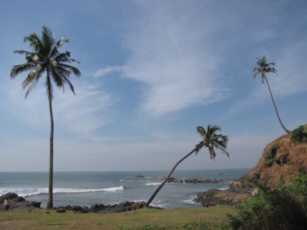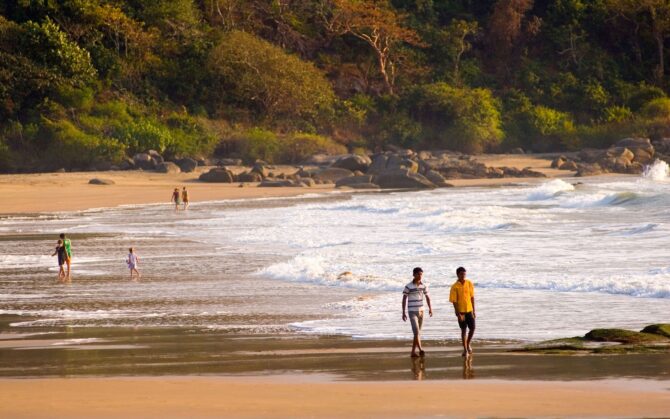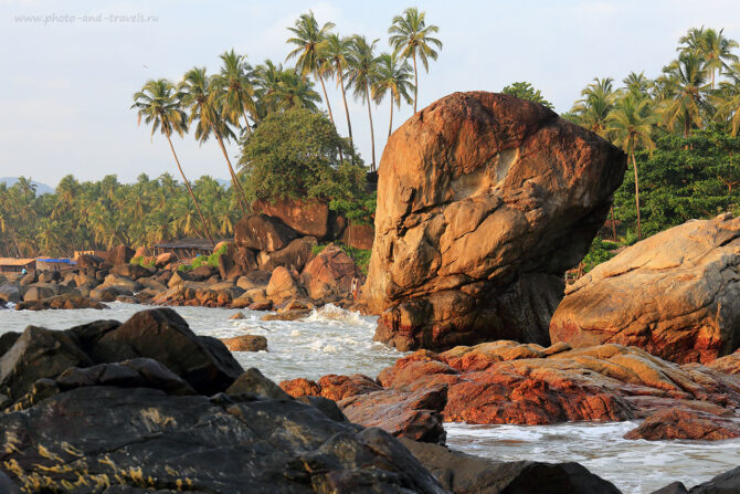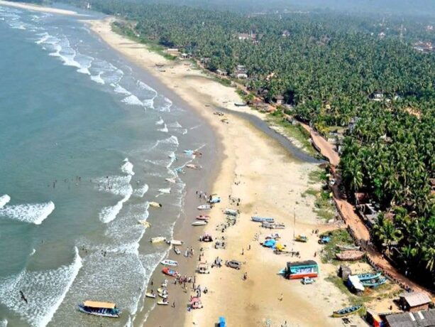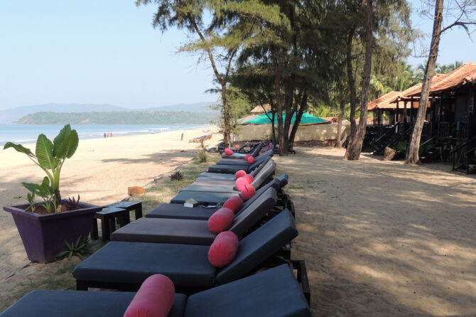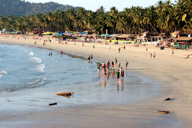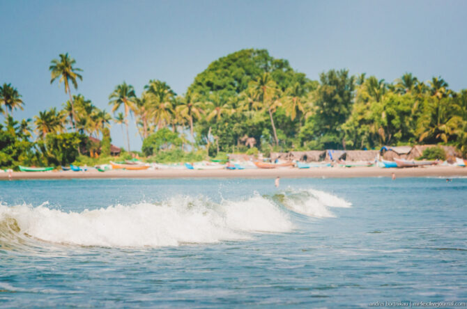 Beautiful beach Arossim – a wide strip of white sand, which “licks” calm waves. This place is often chosen by tourists, for whom tranquility and the absence of a large number of people are important. On the shore everywhere you can see the starfish, which the sea throws out the surf.