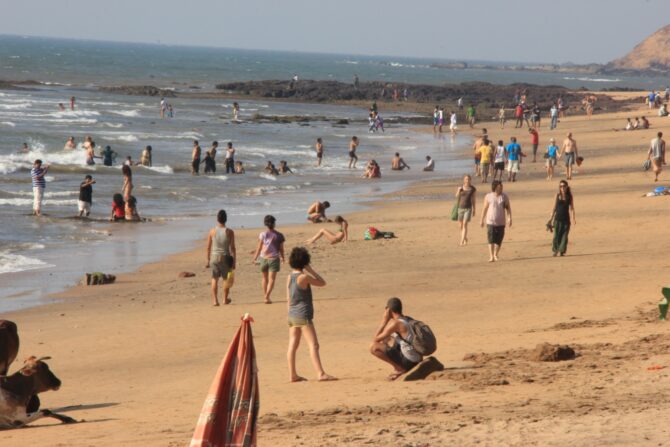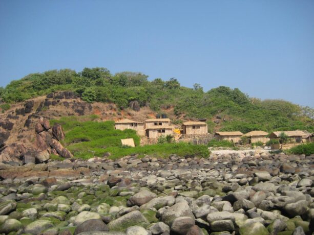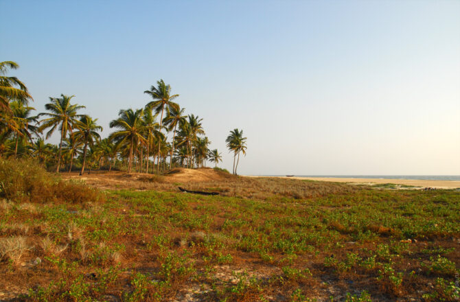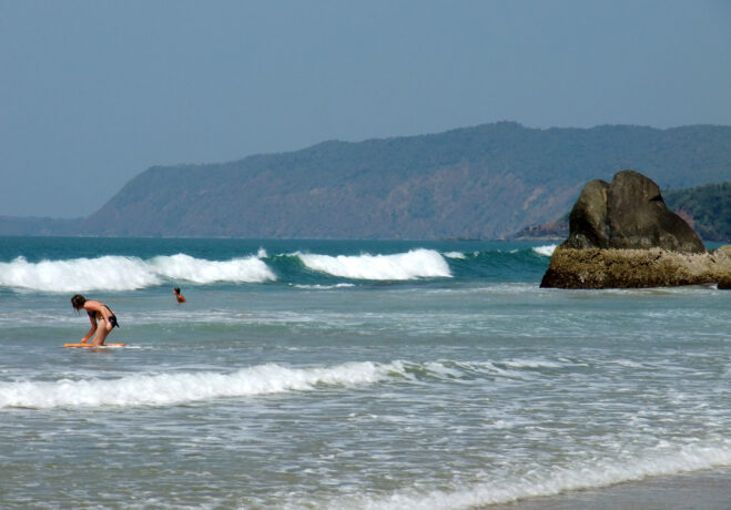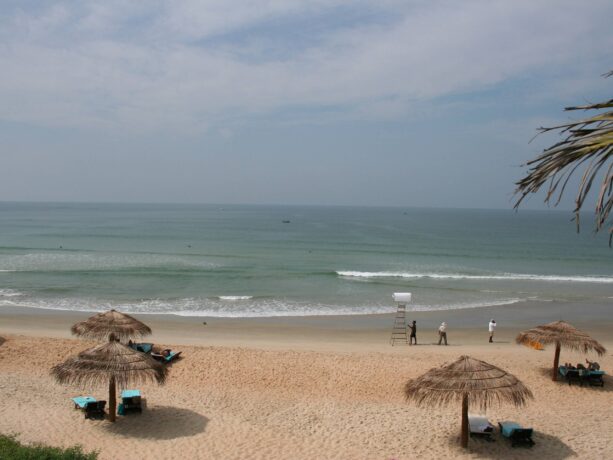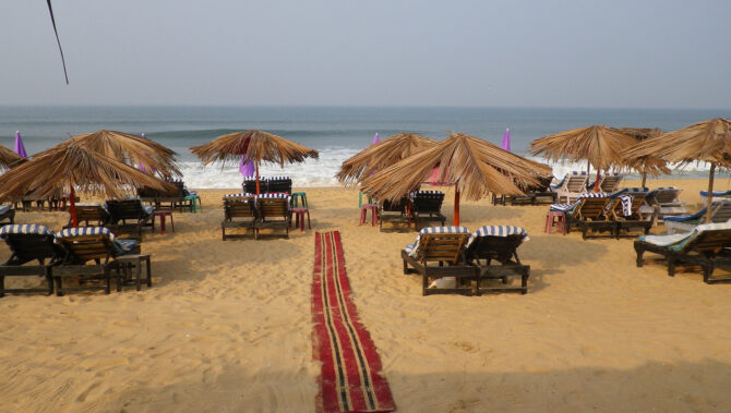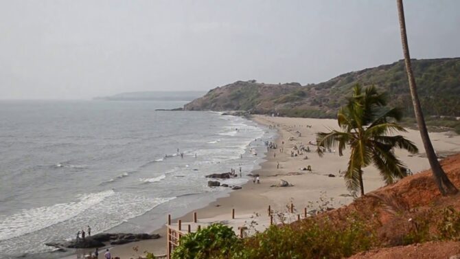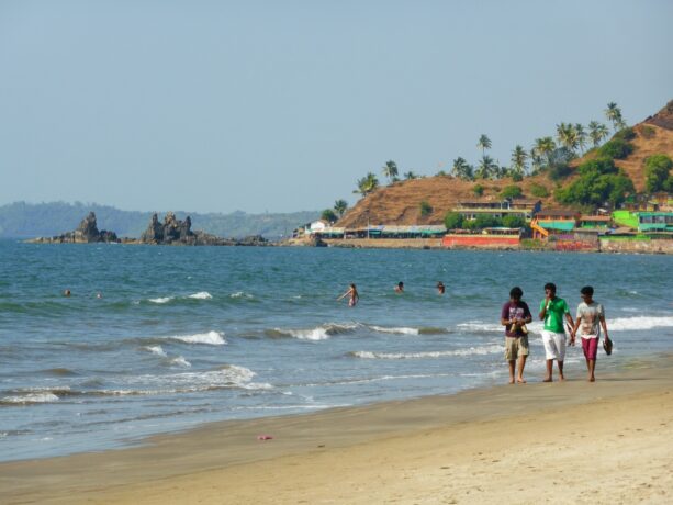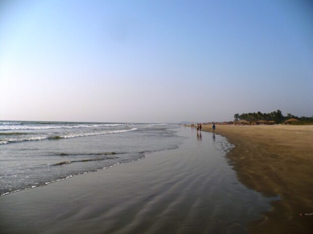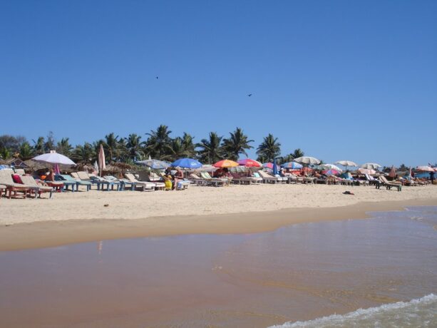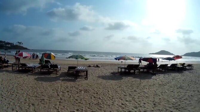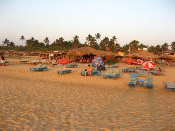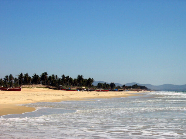 The treasure of the coast – Morjim beach is in a quiet place. Wide, in some places reaching 100 meters, the coastal strip is covered with snow-white sand. Once upon a time, this place on the ocean was reserved – rare turtles laid eggs here, but the development of Morjim Beach by tourists led to the disappearance of turtles.