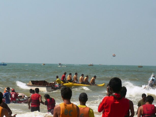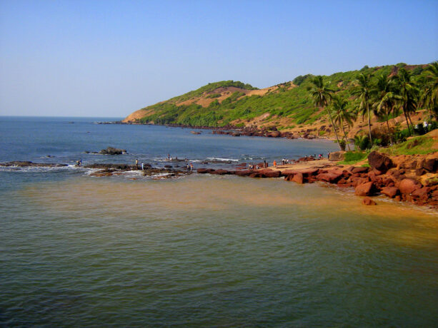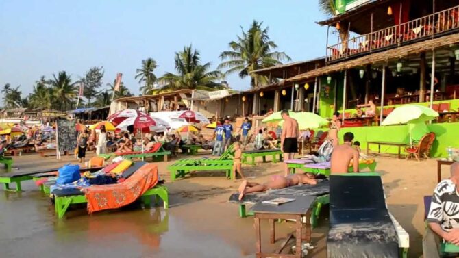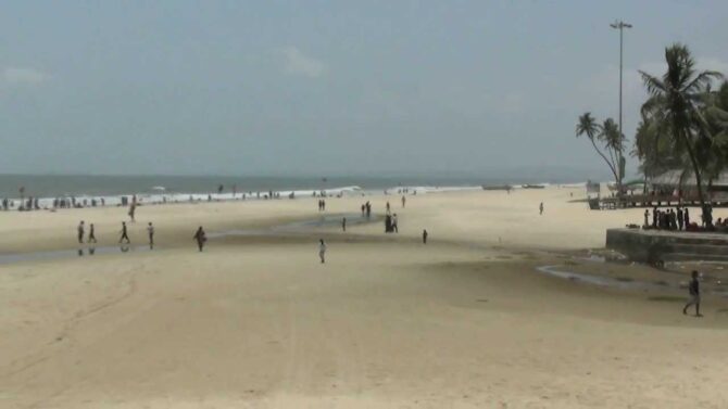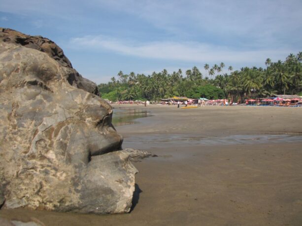 Calangute Beach is located in the city of the same name – a noisy tourist center. It attracts vacationers with the opportunity to inexpensively settle right on the beach in a small bungalow or in a luxury hotel on the shore. This place on the coast is not suitable for a relaxing holiday, as it is always noisy and crowded.