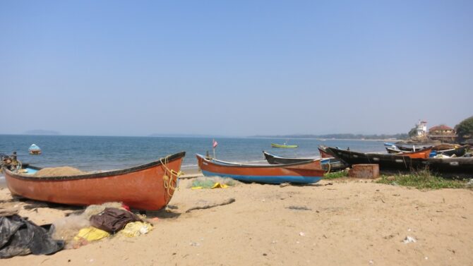 Candolim is well equipped. Along the shore there are sunbeds and umbrellas, and if you go in the direction of Sinkuerim, you can use the services of local residents who offer a wide variety of entertainment – from boat trips to all kinds of water sports.