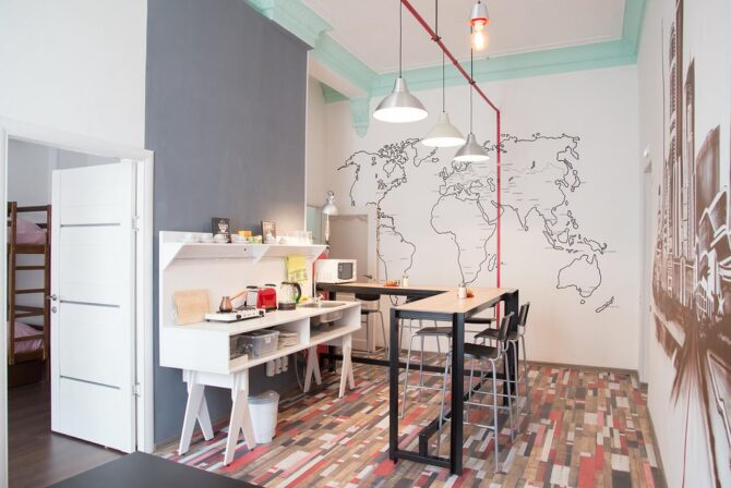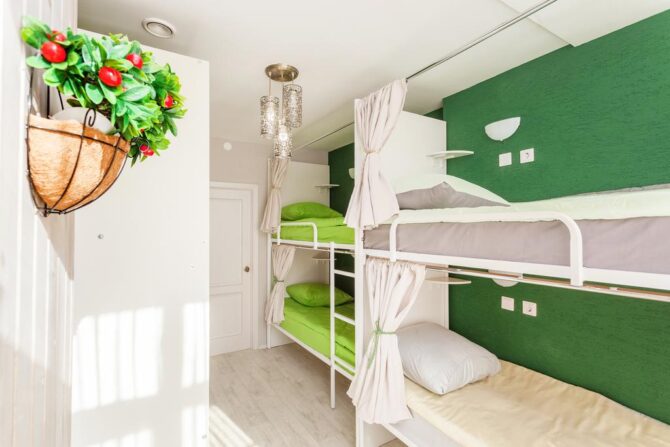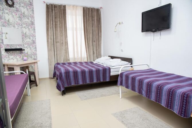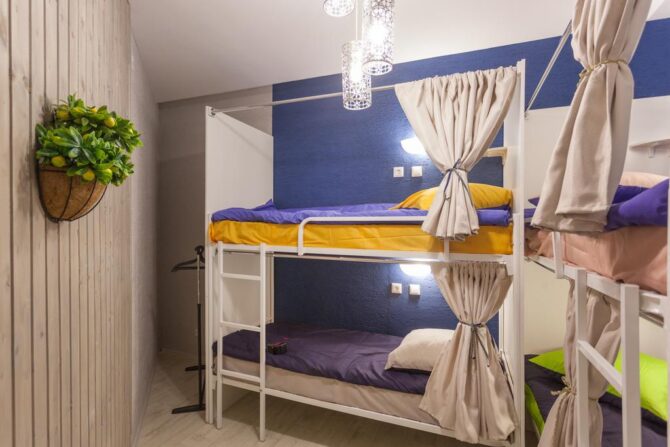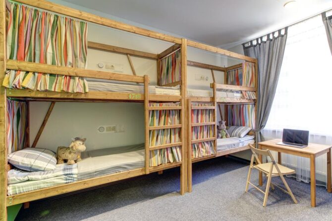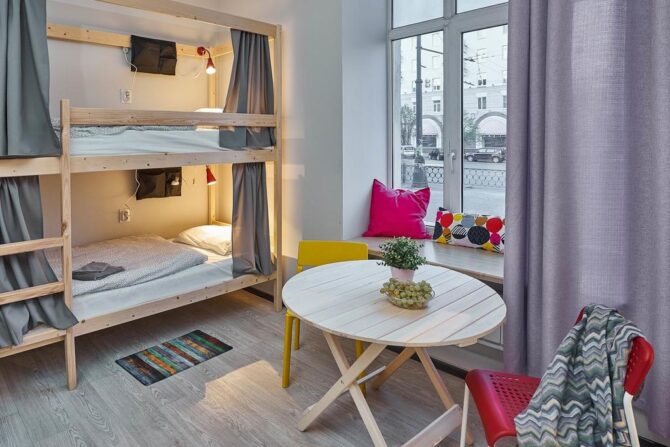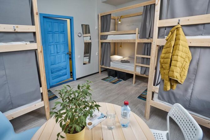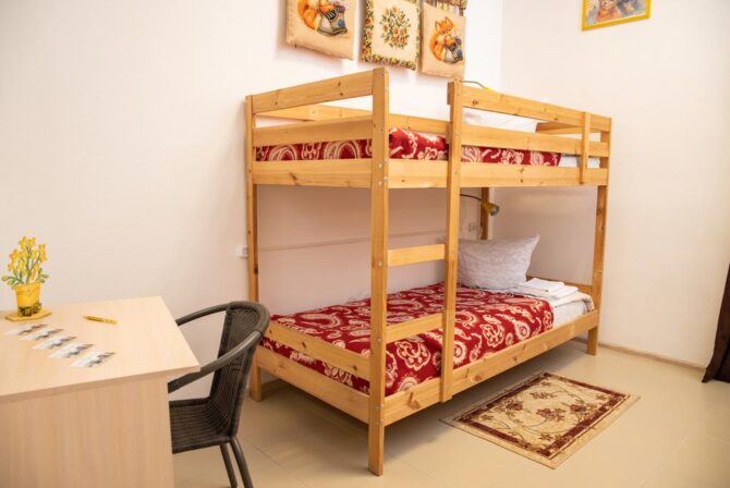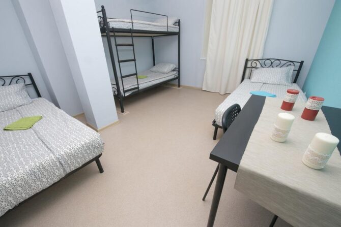 The hostel has hotel rooms of two different categories – a common six-bed apartment and a double suite of economy class. The institution is perfect for those who want to travel on a budget, and for those who are looking for comfortable conditions for an affordable price.