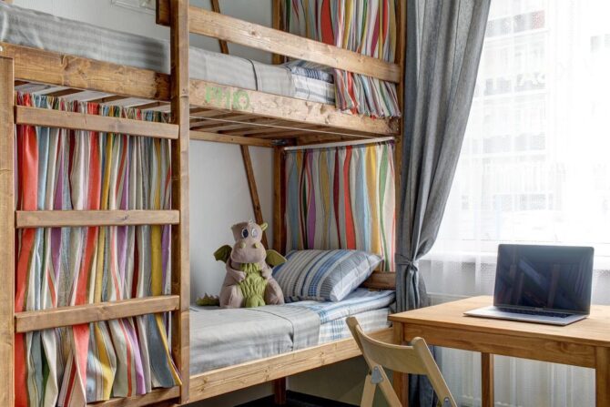 The main advantage of the object is a large selection of different categories of apartments, which can accommodate not only people traveling alone, but also entire families – a standard family suite, an ordinary double room and a bed in a room for four people are available. Some options are equipped with a private bathroom, which is considered an unambiguous plus (it is necessary to clarify with the administrators).