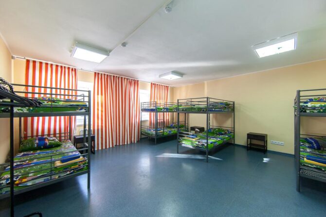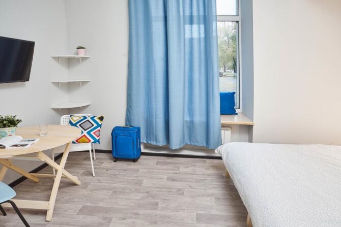 Accommodation options are equipped with all the amenities necessary for a comfortable stay, can be equipped with a personal or shared shower. When making an application, it is possible to choose the type of studio: a bed in a five-bed suite or a separate economy class apartment.