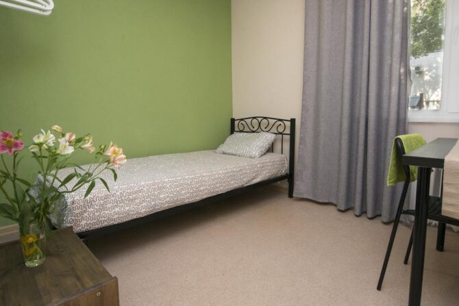 The small number of rooms of the object has two categories of suites: general studios (separately for men or women) and a regular double suite. When booking, it is necessary to take into account that all types of accommodation are not equipped with their own bathroom – bath / shower and toilet are in the public area.