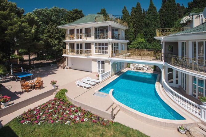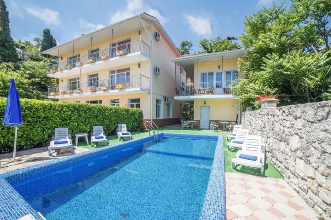 The small town of Alupka, located 20 km from Yalta, is considered to be a children’s health resort of the southern coast of Crimea. As a sanatorium-resort area, it began to develop from the beginning of the 20th century. By 1941, there were 24 specialized sanatoriums, some of them were engaged in the rehabilitation of children. Alupka is famous for its climatic conditions, close to the Middle Earth (hot dry summer), the cleanest sea (pebble beach cover, rocky bottom, clear water). There are not very many hotels here, even less, located directly near the sea. The best of them are presented in this review. Due to the fact that the city is not oversaturated with tourists, a quiet chamber atmosphere is created in Alupka.