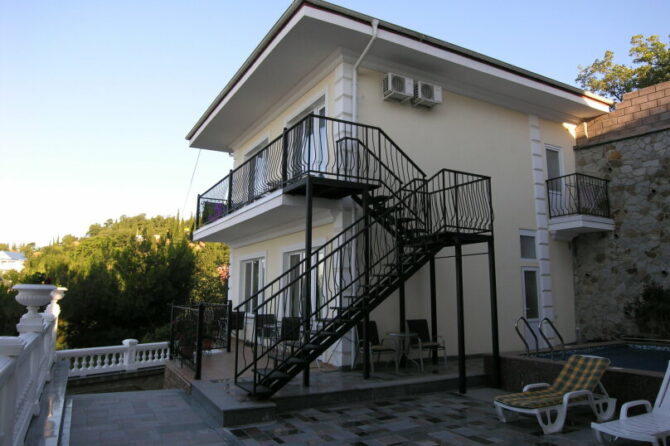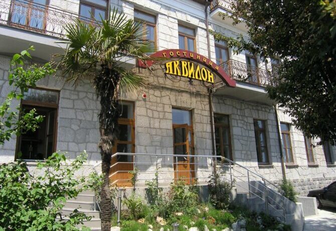 If there is no desire to move away from people, then the best option would be the hotel “Aquilon”,located in the heart of Alupka. The hotel occupies a post office building, which was built in 1993, then in 2006 completely renovated for the needs of the hotel fund. The three-storey house has 17 rooms, a café, a conference hall. Inside there is a cozy green courtyard, in which garden furniture for rest is installed. Rooms of the following categories are prepared to accommodate guests: