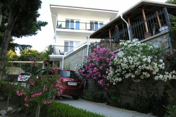 The guest house is famous throughout Alupka for its Tavern. It is believed that mullet and rapanov with onions are perfectly fried here. A separate menu has been developed for children. Godlewski Park is 60 metres away. It is equipped with 3 playgrounds with swings, carousels and sandboxes. To the sea 10 minutes walk. The villa welcomes guests in 2004. Private parking is available. A shuttle service is available on request. Pets are not charged.