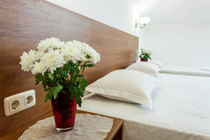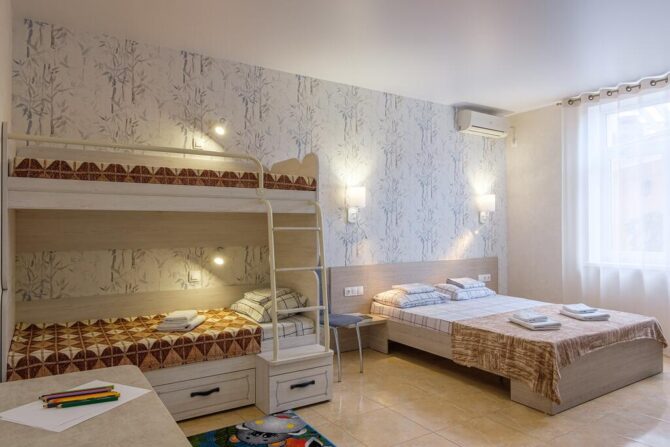A small guest house “Quilt” belongs to the category of accommodation of economy class. There are only family rooms designed to accommodate 3-4 people (18 and 20 sq. m.). Each room has an en suite bathroom. You can prepare lunch or dinner in the shared kitchen. Meals are not provided by the hosts. Within walking distance there is a grocery store, a market, household markets.