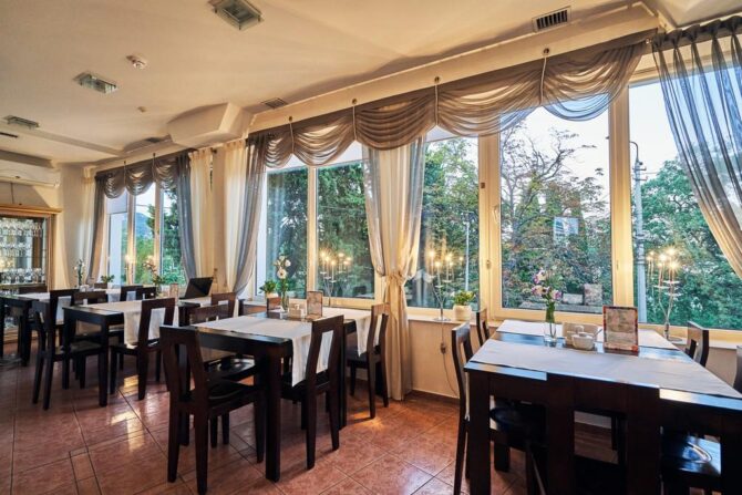 The restaurant caters are also available. The kitchen offers Slavic, European and Mediterranean dishes, bread and pastries of its own making. On the territory there is a swimming pool, a children’s playground. The inn is only open during high season. You can’t come with animals. The administrator will help with the transfer. There is private parking (paid).