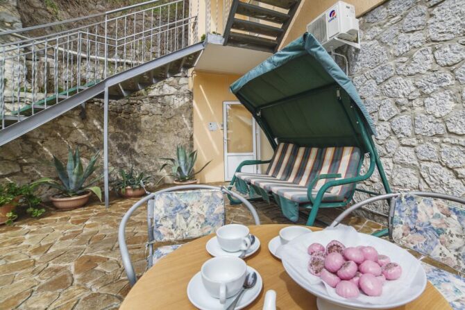 “I recommend it to those who want to combine secluded accommodation, excursions, comfort. Rooms are equipped with chic furniture. Here you feel like at home surrounded by familiar things. The cook prepares amazing food. Nearby there is a round-the-clock store “Marina”. To the sea walk about 5 minutes» Igor, Russia
