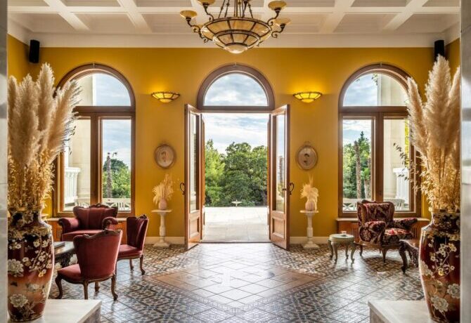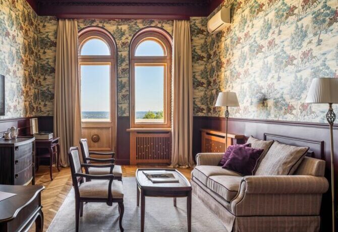 It is impossible not to mention the 5-star hotel complex “Rachmaninoff’s Dacha”. It is located in the area of the park of relict plants Miskhor, on the Alupkinskoye highway, 20 km from Yalta. The building and the main infrastructure were built in 1958. In 2019, the main building and other buildings were completely reconstructed. The concept of cozy luxury and individuality is preserved. At the Dacha there was the same hotel fund, consisting of 10 unique roomsin design.