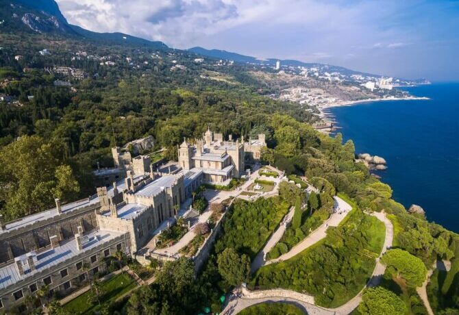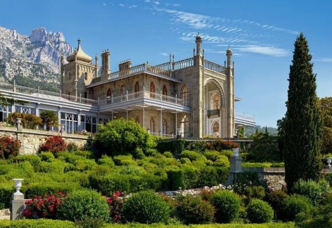 Alupka is interesting for its history and monuments. The settlement was founded in 960 (the first written mention). The town gained fame in the 19th century, after in 1823 it passed into the possession of Count Mikhail Vorontsov. By the way, the pearl of the coast – the famous Vorontsov Palace – was built here, in Alupka. The count was courteous with the indigenous population of the village, so the first thing he built here was a church for the Orthodox and a mosque for Muslims.