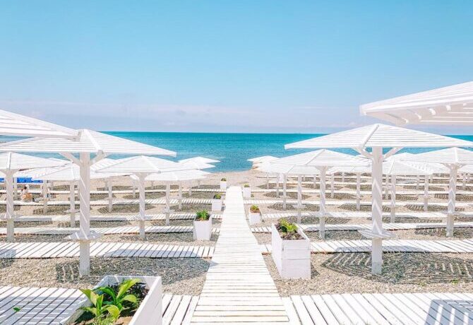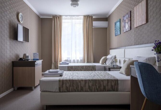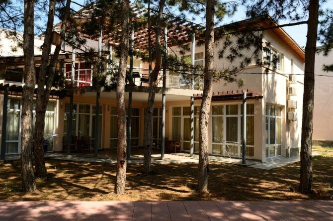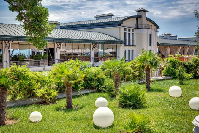 Cozy hotel in the middle of shrubs, made in the form of a mansion. You can stay in a room of any type or a wooden cozy house. The local restaurant will delight with delicacies of fish and seafood. The bar contains a collection of domestic and foreign wines. Tourists can relax in the massage room and in the wood-heated bath. The hotel’s staff from the excursion desk will help you plan an interesting and exciting holiday by the sea.