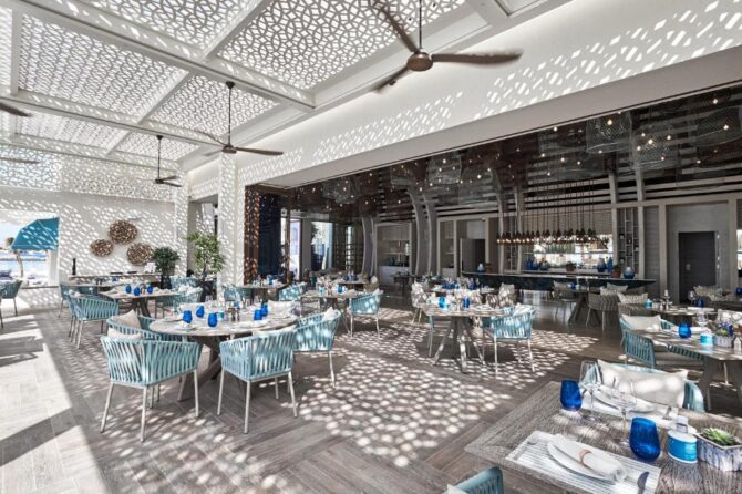 Dubai’s most luxurious hotels are located on the seafront. That is The Ritz-Carlton. Its number of rooms is located in low-rise buildings built in the Mediterranean style. For guests, a special club lounge has been created, where the New Year’s performance takes place. The chef annually pleases guests with a new banquet menu, and the animators of the children’s club are determined to entertain the little guests of the hotel indefinitely. The holiday will be filled with culinary impressions, fun and many surprises. It starts with French sparkling wine and oysters. A gourmet dinner buffet is served. There is a free bar until midnight, followed by an à la carte drink. The party is served by a “live” big band, the repertoire of which consists of classical pop and jazz hits. An outdoor brunch is served on 1 January. It comes with your favorite cocktails and spirits. The orchestra continues its performance until 16.00 local time.