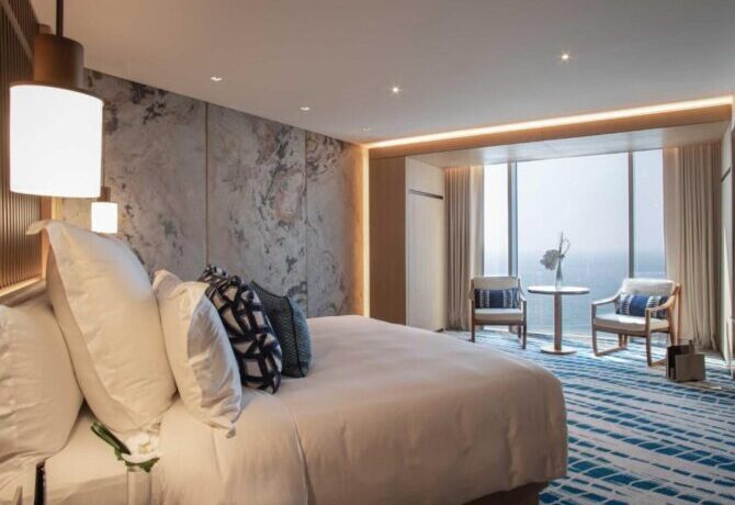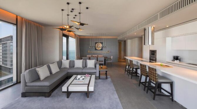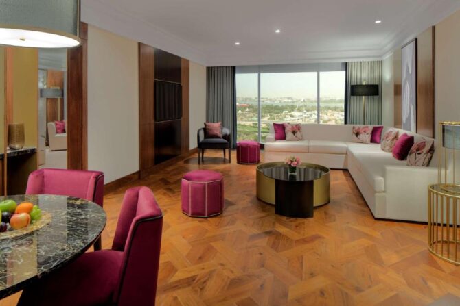 Luxury hotels are the hallmark of Dubai. Guests from all over the world come here, so the owners of hotel complexes try to surprise their guests. Park Hyatt Dubai has an 18-hole tournament golf course. While some practice their favorite sport, others relax in the lounge of the 100-meter infinity pool. New Year’s Eve is held in the following format: a eve, a gala dinner with a view of the bay, a live entertainment program, a permanent DJ, and their own fireworks display are organized. All restaurants of the hotel have an international level. “Noepe” specializes in seafood, “The Thai Kitchen” is equipped with three open kitchens, where Thai food is prepared in front of the public, “Brasserie du Park” works on the principle of an international pub. It gathers to socialize, drink beer with traditional snacks. At the disposal of the hotel there is a yacht club “Dubai Creek”, from the pier of which you can go on a sea trip on a rented yacht. The spa offers facial and body care programs.