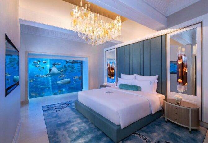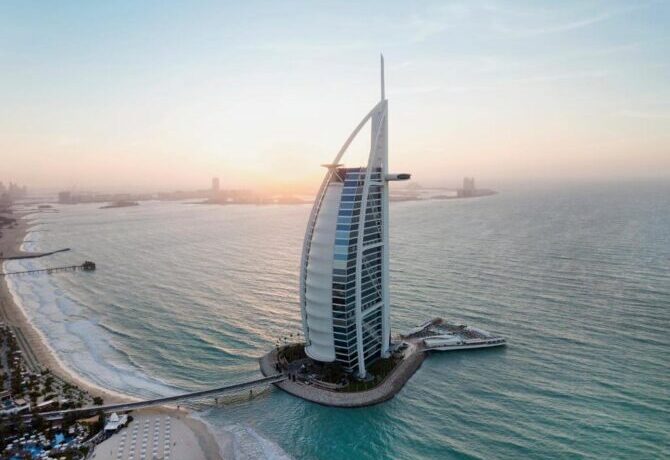 Dubai’s most famous hotel, Burj Al Arab Jumeirah, is built in the shape of a sail and is a symbol of Arabian luxury. It is here that the most unforgettable New Year’s shows take place, and at midnight the main fireworks in the city are launched. The main banquet hall is decorated in the image of the Vienna Opera House. Each room is a new word in modern interior design. Michelin-starred chefs work in the restaurant kitchens. Their dishes will make up the banquet menu on the main night of the year. After dinner, guests will go to the open area, where famous artists and a big band will perform for them. The festive package includes: exclusive prices for the banquet, a panoramic platform overlooking all the fireworks of the city, live performances, a generous breakfast every subsequent morning, world-class butler services, access to an ultra luxurious terrace, a private beach, a beach club, a spa center, a water park.