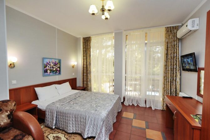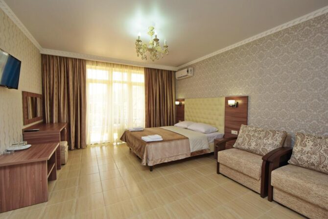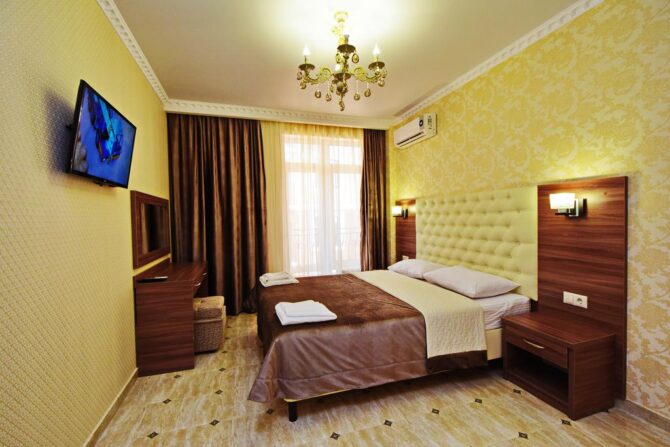 Отель «Круиз» | 4, 7 км до аэропорта Геленджик | Стандартный, Студио, Семейный, Люкс. | Кондиционер Сейф Фен Телевизор Холодильник | Частный пляж Открытый бассейн Wi-fi | Дети до 4 лет – бесплатно! Минимальная цена за номер за одну ночь – 70 EUR. | Нет. |