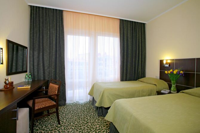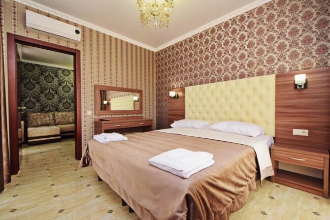 The hotel is suitable for both traveling couples and parents with children: in rooms of different categories can accommodate from one to three people. The hotel has the following types of apartments: standard, family and junior suite.