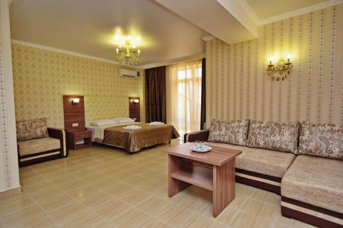 Богема Премиум Отель | 5,7 км до аэропорта Геленджик | Стандартный, Семейный, Студио, Улучшенный номер. | Сейф Кондиционер Фен Холодильник Шумоизоляция Чайник | Бассейны СПА Сауна Салон красоты Игровая площадка | Дети до 2 лет – бесплатно. Минимальная цена за номер за одну ночь – 75 EUR. | Платно, по предварительному запросу. |