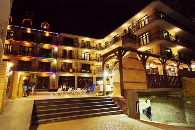 Almost three years ago, a small resort complex opened its doors to guests on the Black Sea coast, which immediately received a lot of positive feedback from travelers. Tourists note the good location of the hotel: nearby you can find an amusement park, beaches, shops and the airport.