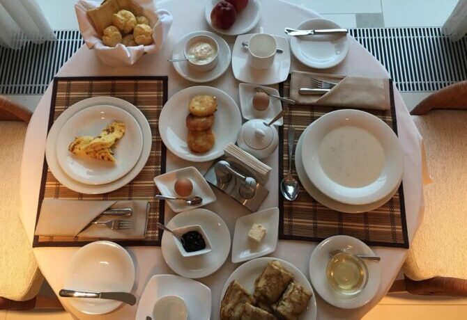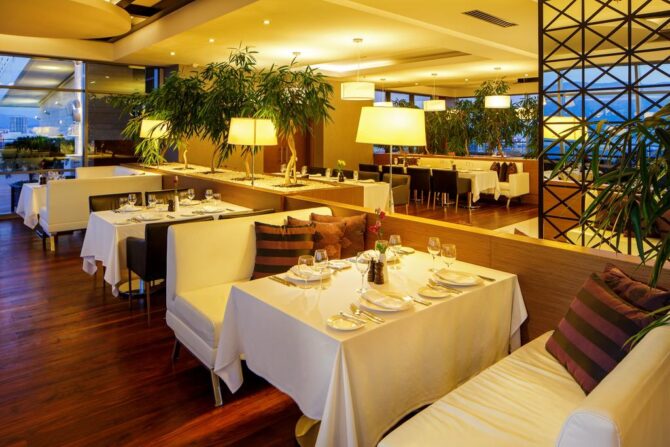 Two restaurants owned by the hotel are served by à la carte and buffet system. Guests can try treats of famous cuisines of the world: Mediterranean, Russian or European.