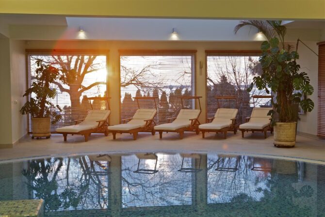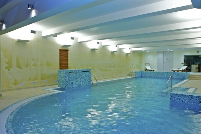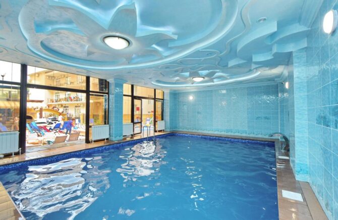 The complex has swimming pools, SPA areas, sauna/bath, as well as a beauty salon. The pools function even in autumn and winter, as they are heated.