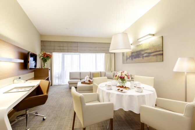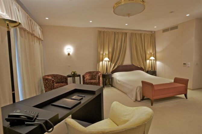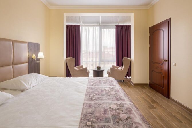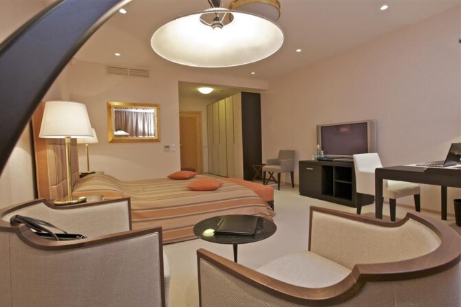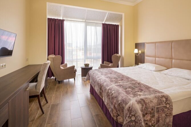 The hotel has several categories of apartments open for booking, which are suitable for accommodating a maximum of seven tourists: standard room, junior suite, suite and family suite.