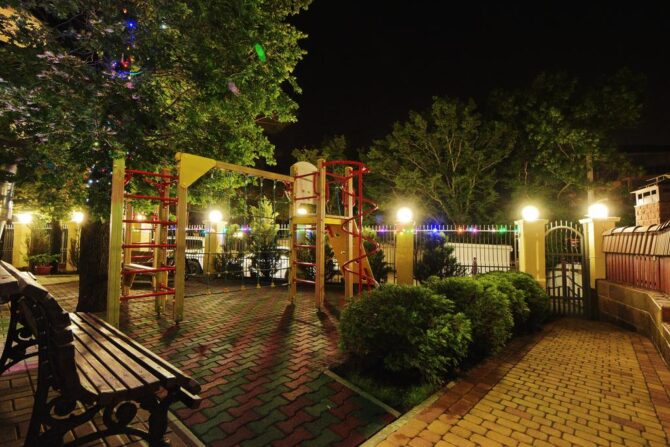 A small but well-equipped hotel complex is surrounded by iconic places of Gelendzhik: Safari Park, shopping and entertainment centers, embankment, water park and beaches. With the help of a transfer, which is ordered at the hotel in advance, you can get to the complex in ten minutes.