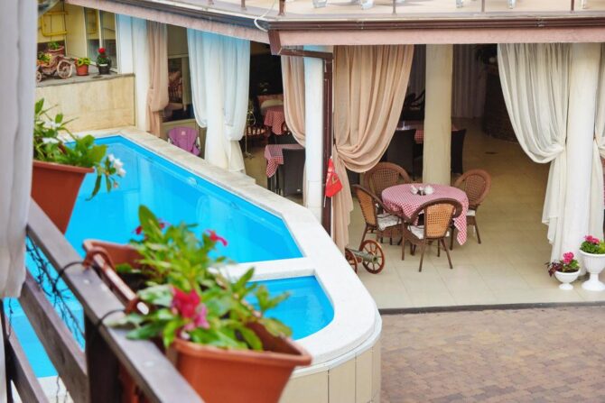 Well, dear travelers, have you dealt with the top hotels of foreign countries? Then it was time to talk about the best hotels with a swimming pool on the coastal zone of the Black Sea, which in terms of living conditions and infrastructure may well compete with many well-known foreign resorts.