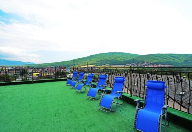 Stylish small resort complex is located a little away from Gelendzhik, but to get to the city center is not difficult – by taxi or bus the trip will last about fifteen minutes. Near the building there are local markets, cafes and restaurants, as well as amusement parks.