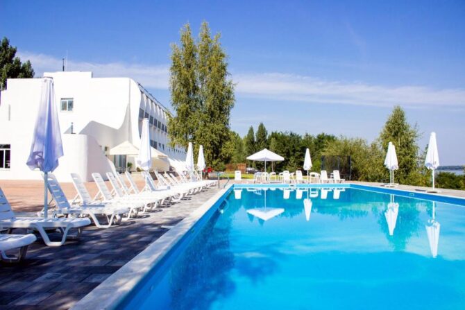 46 km north of Vyshgorod is the picturesque village of Tolokun. Here on the shore of the Kiev Sea – the so-called reservoir on the Dnieper – is located Morewell. The hotel offers accommodation in comfortable rooms of three categories. For vacationers, a variety of leisure activities are available in the three-storey hotel building and on its territory: