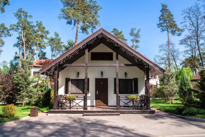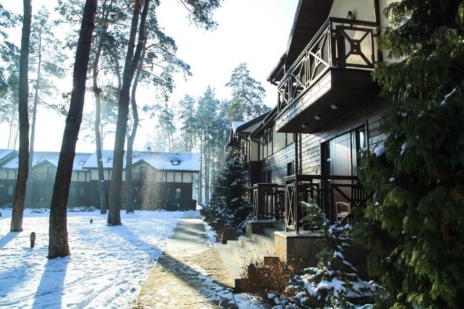 One of the most suitable options for lovers of country pastime in winter is “Kidev”. The hotel complex Kidev, located in the village of Chubinskoye, 16 km east of the Ukrainian capital, positions itself as a park hotel. On its territory there are several cottages and the main building. A total of 22 rooms are available.