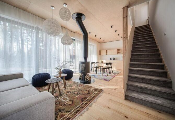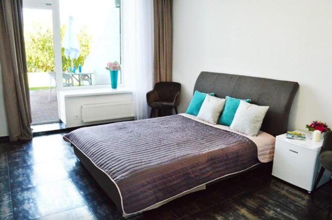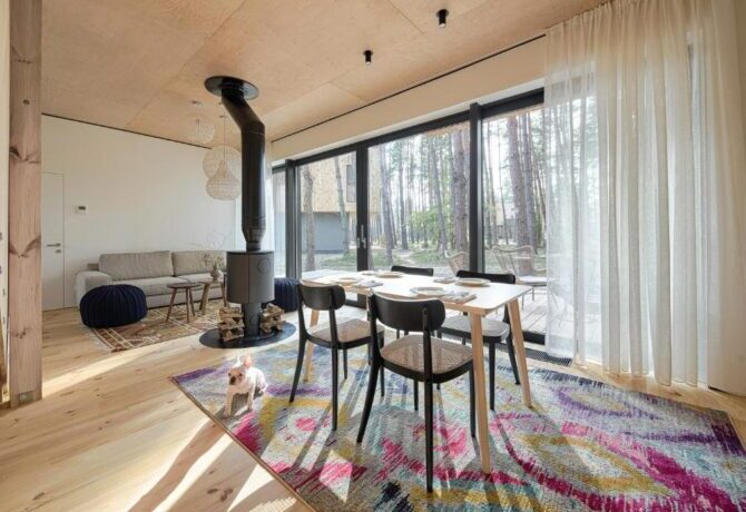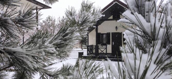 In winter, guests enjoy skiing along the snow-covered paths of the nearby pine forest. Breakfasts of the type “buffet” or “continental” are served to vacationers in cottages. Lunches and dinners are often arranged by hotel guests themselves. If desired, you can get acquainted with the taste of European dishes in the restaurant. The small bar offers a wide selection of original cocktails.