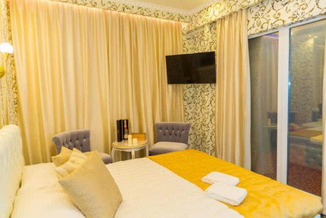 Spacious rooms with a carefully thought-out interior will appeal to even the most experienced tourists. The on-site restaurant serves Georgian cuisine. Professional chefs in the best traditions of the Caucasus will prepare a real culinary masterpiece. The concept of the hotel provides room service, which allows you to enjoy your meal in a more intimate romantic atmosphere.
