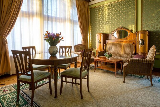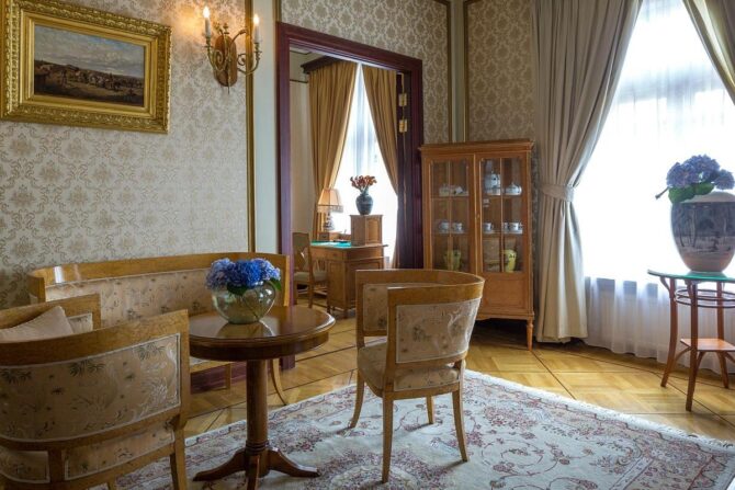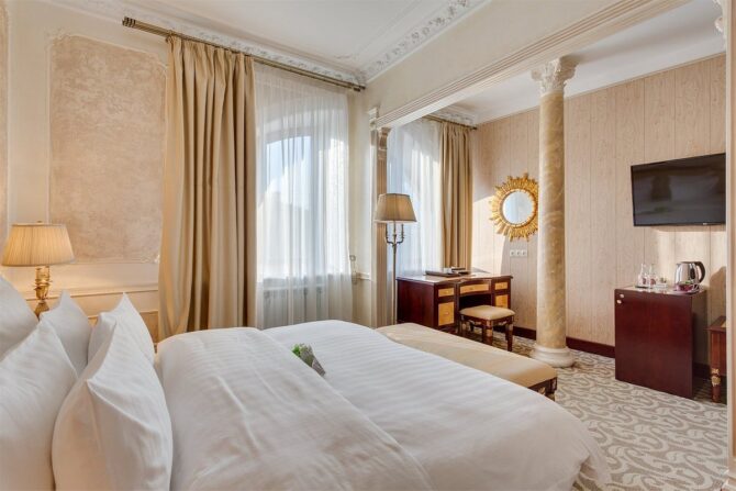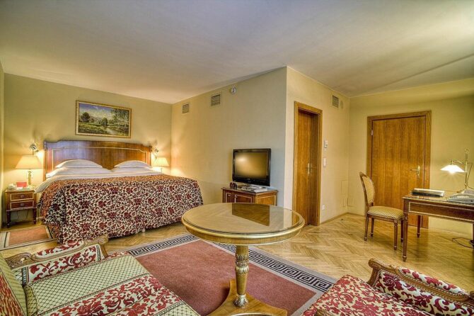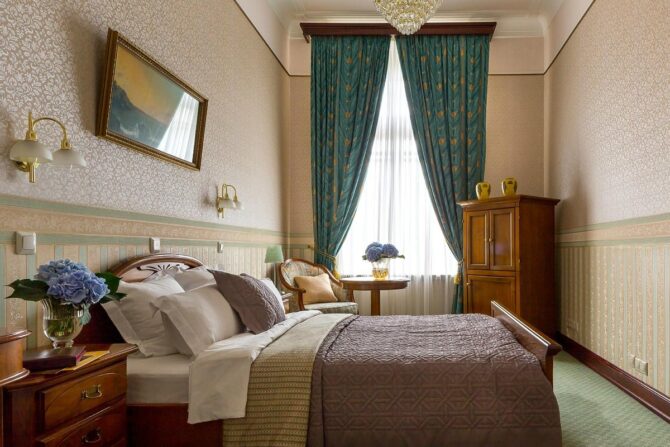 Each hotel room is a real work of art. The interiors will plunge you into the atmosphere of the past, and professional staff will do everything to make the time spent here remembered for many years.
