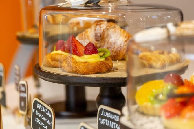 The hotel restaurant and café are the best in the city. It serves dishes of European, Russian cuisine. In addition, author’s culinary masterpieces have been developed here. With trepidation and love, the hotel staff prepares for new Year’s Eve. A gastronomic dinner will be arranged. It includes 7 courses of serving dishes, author’s desserts from the chef, as well as a bottle of sparkling wine as a gift.