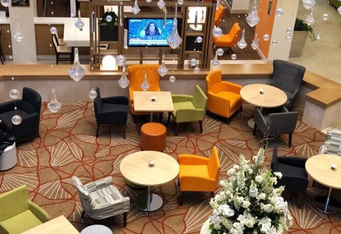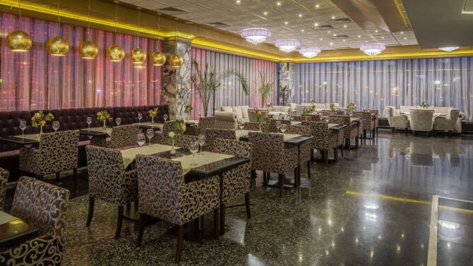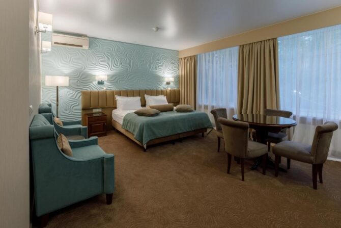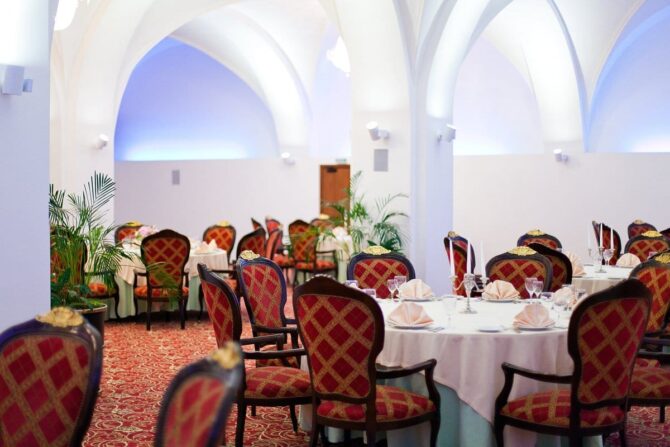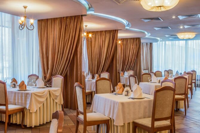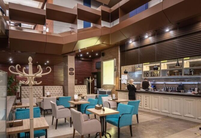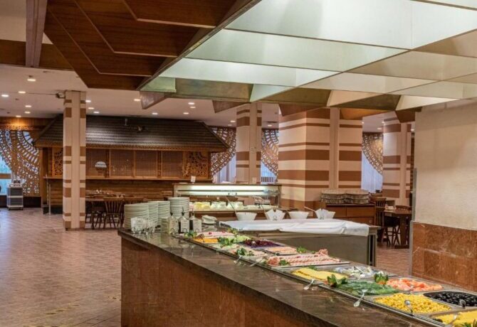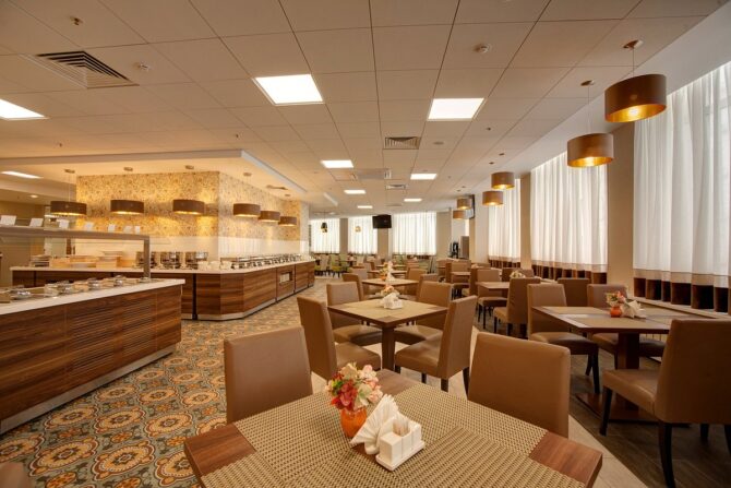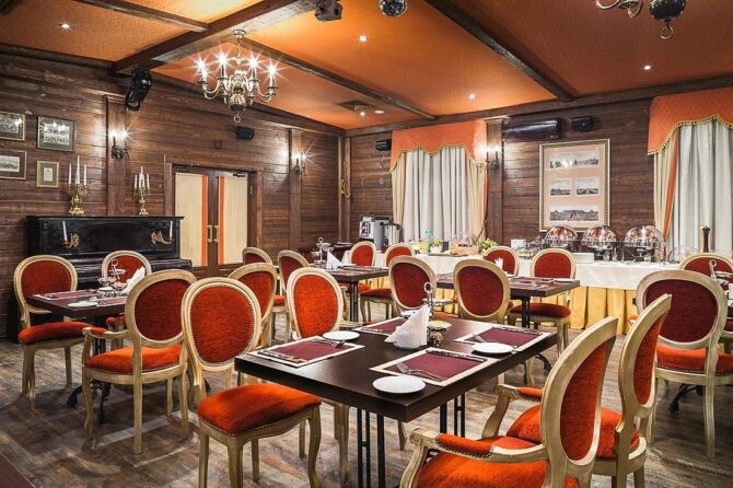 The real pride of the hotel is a cozy and elegant restaurant. Its doors are open for breakfast, lunch and dinner. Guests can take advantage of the “Business Lunch” offer or order their favorite dish from the menu. A great addition to dinner in the soulful company will be live music. The hotel restaurant is ready for corporate and New Year’s banquets. Employees offer the most interesting suggestions for any event. On New Year’s Eve, guests will enjoy an incendiary disco, karaoke, a festive buffet, prizes and congratulations from Santa Claus.